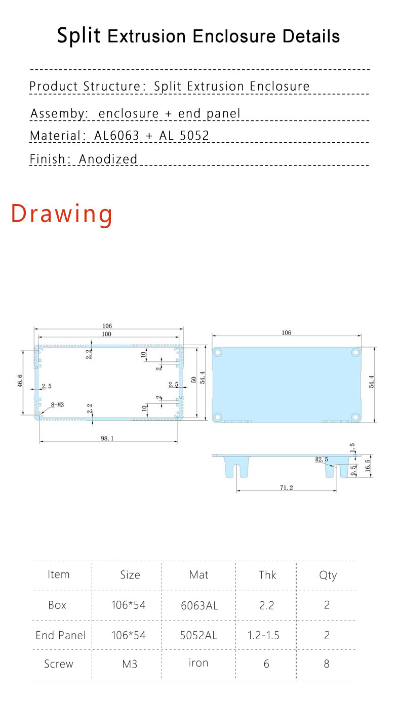 Brand : Pumay External dimensions: 106 x 54-L mm / 4.17'' x 2.12''x L '' ( W x H x L ) Internal dimensions: as drawing Stock Length :100 mm Stock Color :Gray Structure : Split Package weight: near 35 KG Unit Price : 1-8 USD