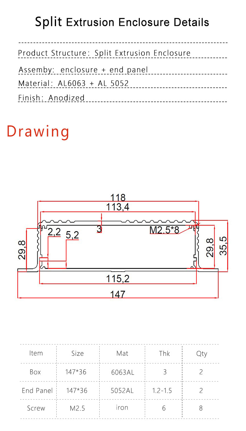 • 147*36Aluminum enclosure for PCB POWER shell electric project box,147*36Aluminum enclosure for PCB POWER shell electric project box