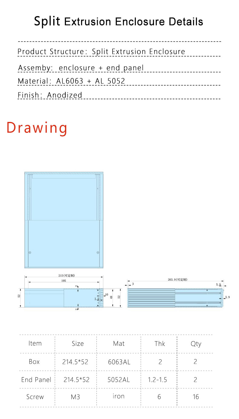 215*52-L aluminum chassis box metal project enclosure small clear electrical enclosure