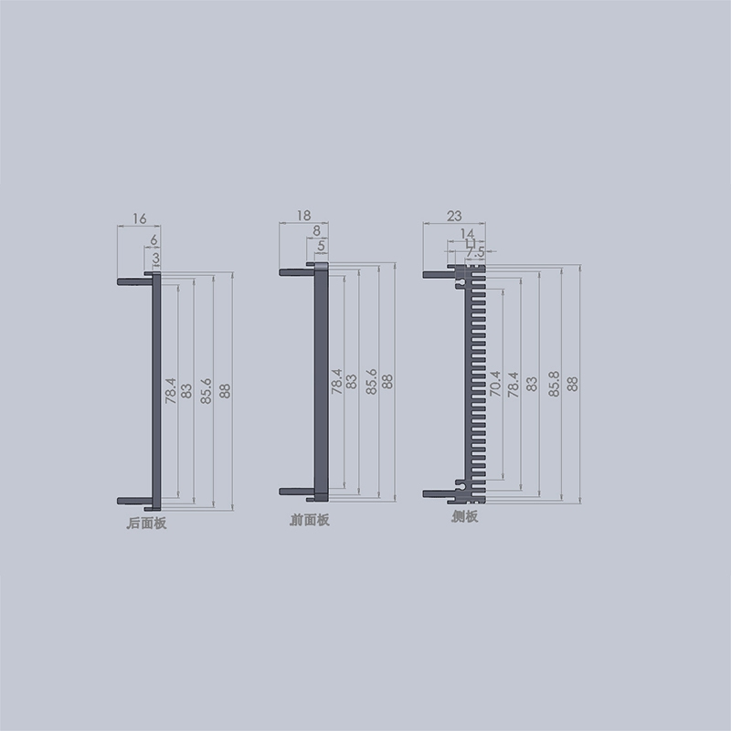 3 Extrusion Side Panel  each 1 Aluminum Alloy 6063  Brush  / Anodizing Black / Gray Color